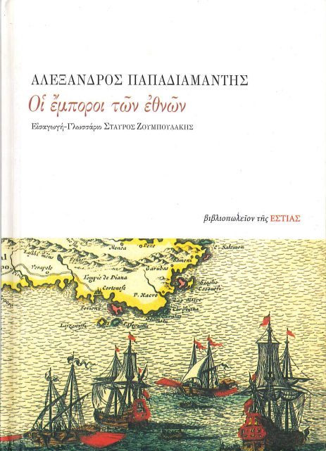 Ο Αλέξανδρος Παπαδιαμάντης (1851-1911), ένας από τους πιο μεγάλους ευρωπαίους διηγηματογράφους, θα ξεκινήσει τη συγγραφική δραστηριότητά του ως μυθιστοριογράφος. «Οι έμποροι των εθνών» (1882) είναι το δεύτερο από τα τρία μυθιστορήματα του συγγραφέα. Η δράση του τοποθετείται μεταξύ του 1199 και 1207, δηλαδή λίγο πριν και λίγο μετά την Άλωση της Κωνσταντινούπολης από τους Σταυροφόρους της τέταρτης Σταυροφορίας. Πρόκειται άραγε για ιστορικό μυθιστόρημα, με θέμα τη σύγκρουση Βενετών και Ελλήνων στο Αιγαίο; Ή μήπως για ένα μυθιστόρημα «με θέση», το οποίο υπερασπίζεται την Ελληνορθόδοξη Ανατολή κατά της Ρωμαιοκαθολικής Δύσης; Πρόκειται κυριώτατα για οξυδερκή και διεισδυτική μελέτη του ερωτικού πάθους, της σαρκικής επιθυμίας και του πόθου. Η Αυγούστα εγκαταλείπει τον σύζυγό της Ιωάννη Μούχτρα και ακολουθεί τον Βενετό Μάρκο Σανούτο, όχι επειδή δυστυχεί με τον πρώτο και θέλει να ευτυχήσει με τον δεύτερο, αλλά γιατί είναι αιχμάλωτη μιας ακατανίκητης, κυριολεκτικά θανάσιμης ερωτικής επιθυμίας. Σε πλήρη ψυχική αδυναμία για να κάνει οτιδήποτε άλλο, η Αυγούστα θα τραβήξει το δρόμο του πάθους της μέχρι τέλους, μέχρι θανάτου, του δικού της ασφαλώς θανάτου: Καίγεται ζωντανή, μόνη πάνω στη ναυαρχίδα του εραστή της.