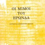 Η ενασχόλησή μου με το κείμενο του Ηρώνδα ξεκίνησε από πολύ παλιά, κι ήταν προέκταση των διαφερόντων μου γύρω από την παπυρολογία. Δίδαξα το κείμενο στο Πανεπιστήμιο Αθηνών και Κρήτης με βάση την α’ έκδοση, που, σαν “πειραματική” χρησίμευσε ως βοήθημα στα μαθήματά μου. Συγχρόνως μου δόθηκε η ευκαιρία να διαβάσω και να μελετήσω τον ίδιο τον πάπυρο του Ηρώνδα στη βιβλιοθήκη του Βρετανικού Μουσείου. Έτσι το τυπωμένο στη β’ έκδοση κείμενο είναι απόρροια της αυτοψίας του παπύρου. Ο τελευταίος μίμος δεν συμπεριελήφθηκε στην τωρινή έκδοση λόγω της μικρής έκτασης του πάπυρου, που έχει διασωθεί, και της αποσπασματικής μορφής του. (. . .) (ΑΠΟ ΤΟΝ ΠΡΟΛΟΓΟ ΤΗΣ ΕΚΔΟΣΗΣ)